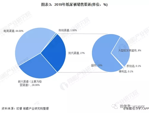 但是對于中國紙尿褲品牌,無論是市場層級提升或下沉,都需要在渠道中有符合自身發(fā)展的定位。隨著互聯(lián)網(wǎng)、5G、人工智能等技術(shù)的發(fā)展,電商渠道、新興渠道逐漸占據(jù)主要銷售渠道。據(jù)歐睿數(shù)據(jù),2019年紙尿褲銷售渠道中,電商渠道占比44%;新興渠道主要為母嬰渠道占比28%。