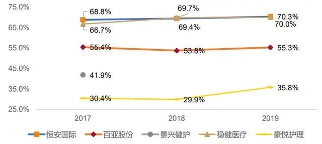 從女性衛(wèi)生用品業(yè)務(wù)的毛利率來看,恒安國際和穩(wěn)健醫(yī)療的毛利率一騎絕塵,2019年均在70%左右。百亞股份次之,2019年為 55.3%。景興健護的商業(yè)模式為研發(fā)貼牌,2017年毛利率為 41.9%。豪悅護理的商業(yè)模式為 ODM代工,2019 年毛利率為 35.8%。