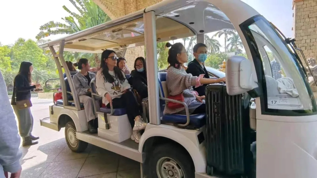 路途丈量著快樂,我們的目的地——漳州云霄金湯灣,提前于午后一刻在路旁迎接一方來客。稍事辦理入住手續(xù),觀光車送我們前往度假村卸下行李。